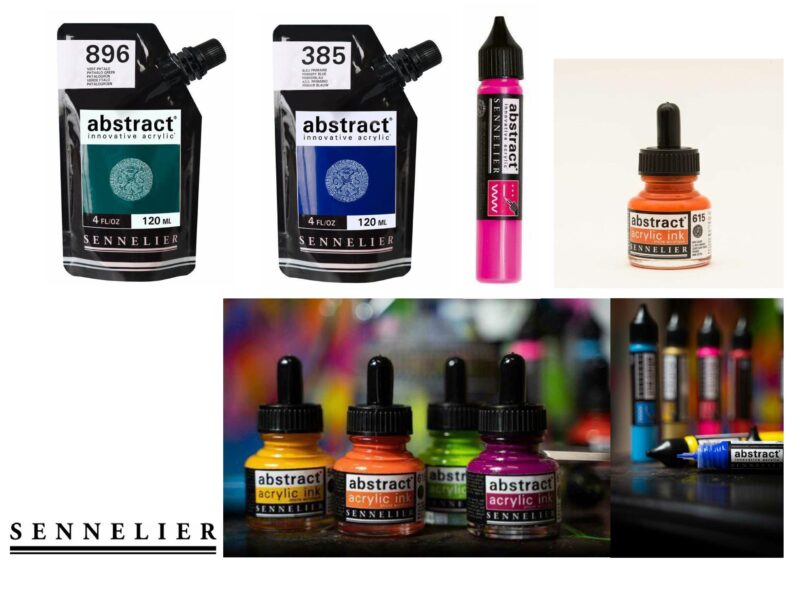 abstract® Heavy Body fra Sennelier 60 kulører i 120ml, samt Primærfaverne og Hvid og Sort i 500ml..